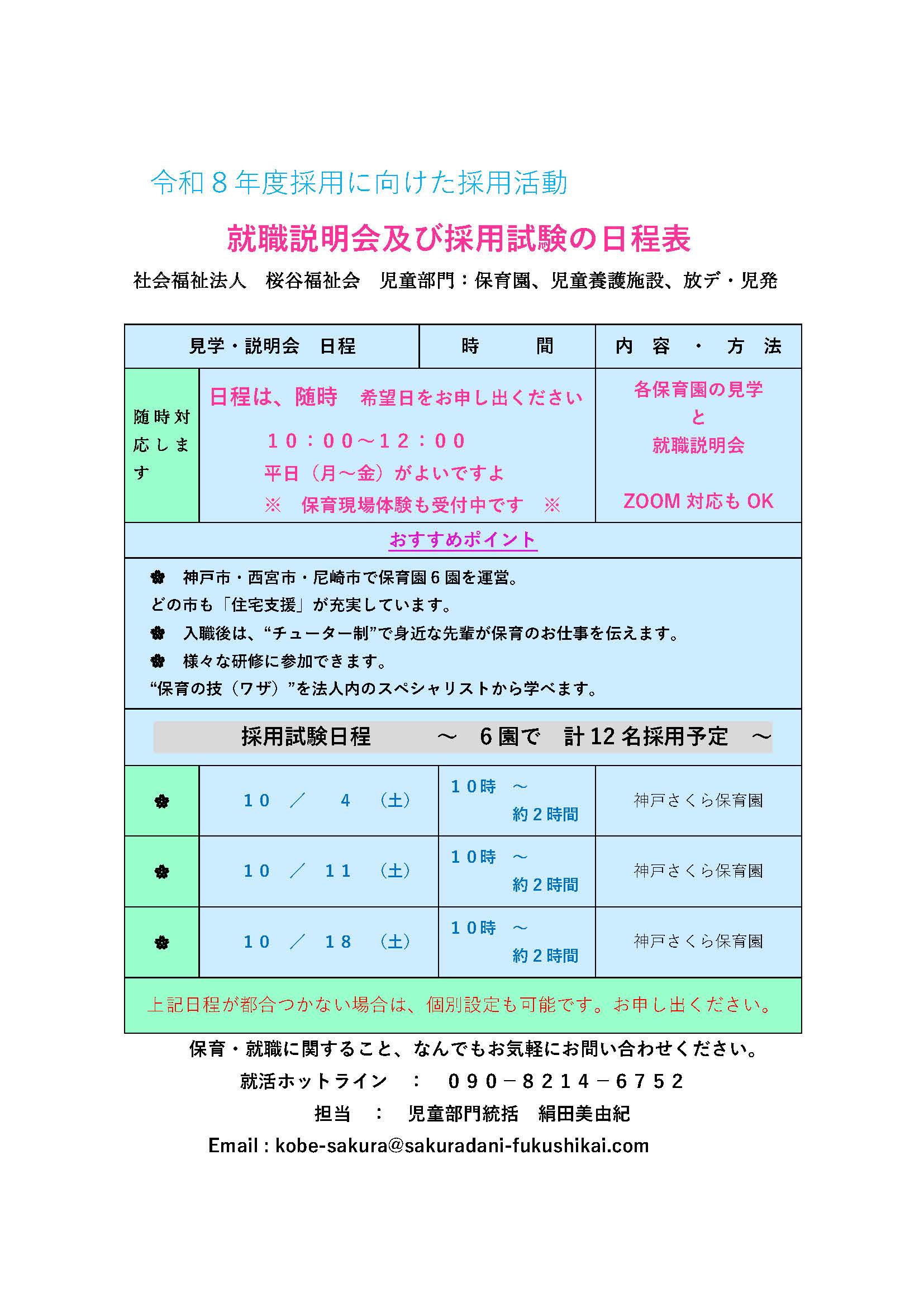 最新情報NEWS 保育部門 令和8年度 就職説明会及び採⽤試験の⽇程表 お知らせ 2025年9月29日 詳細はこちら 新着情報一覧へ戻る « 令和5年度決算-計算書類等報告 最新情報カテゴリ お知らせ プレスリリース 情報開示 新着情報 2025/09/29 保育部門 令和8年度 就職説明会及び採⽤試験の⽇程表 2024/06/25 令和5年度決算-計算書類等報告 2023/06/30 令和4年度決算-計算書類等報告 2022/06/30 令和3年度決算-計算書類等報告 2021/06/30 令和2年度決算-計算書類等報告 最新情報アーカイブ 2025年9月 (1) 2024年6月 (1) 2023年6月 (1) 2022年6月 (1) 2021年6月 (1) 2020年6月 (1) 2019年6月 (1) 2018年6月 (1) 2017年6月 (1) 2016年6月 (1)